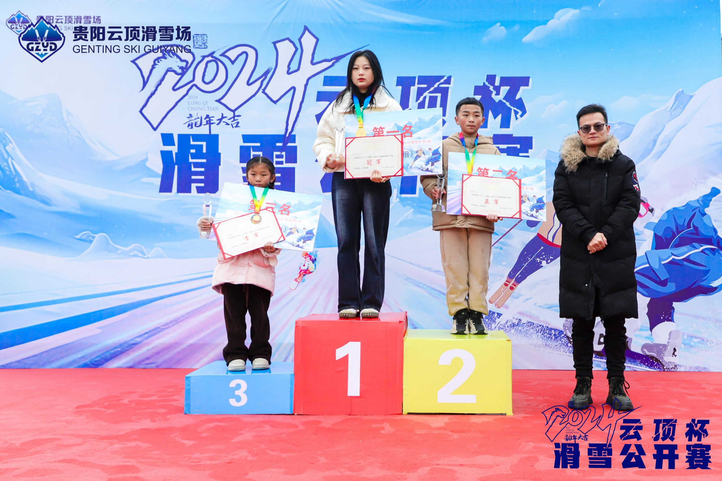 比赛共决出青少年双板、亲子趣味家庭组双板以及成人单板滑雪等多个项目的冠亚季军。