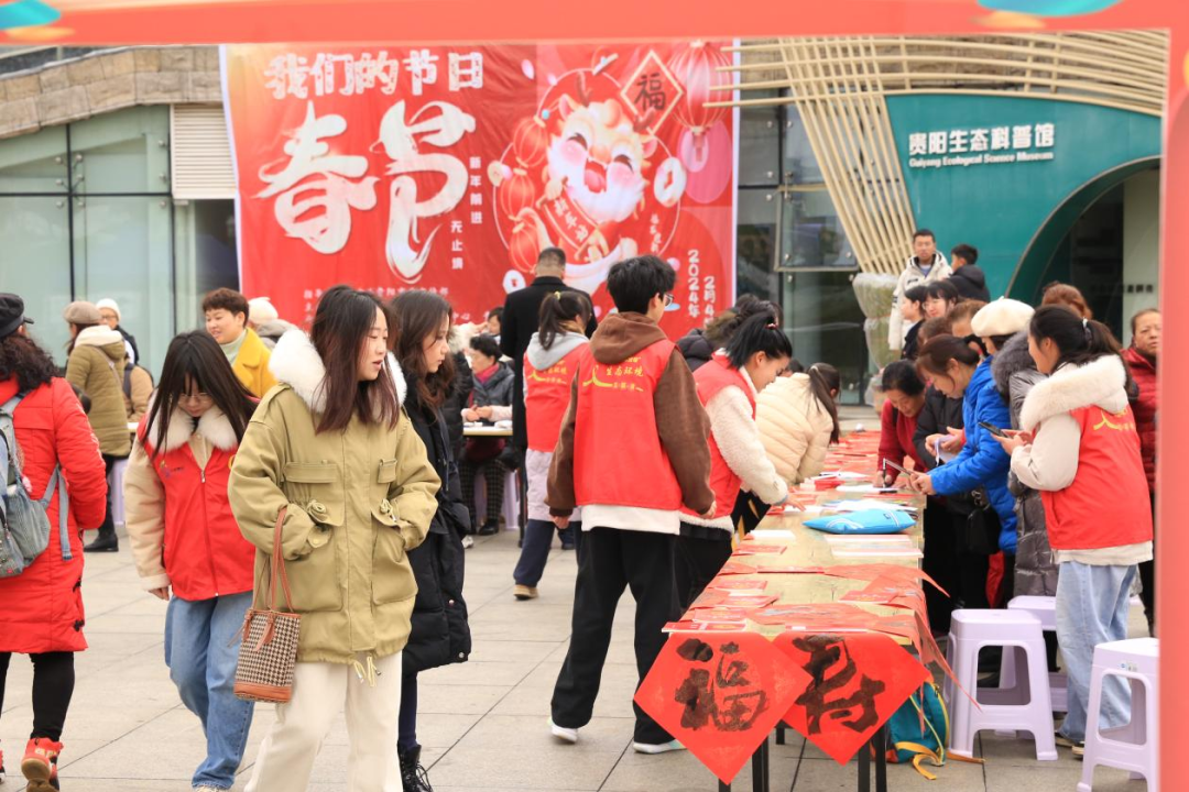 恭迎佳节瑞气浓,祝愿祥云绕碧空。为传承中华优秀传统文化,感受春节浓厚的传统节日氛围,培育生态文明新风,2月4日,由中共贵阳市委宣传部指导,贵阳市生态环境局主办,贵阳市环境宣传教育中心、贵阳生态科普馆、贵阳市花溪国家城市湿地公园管理处、贵阳市花溪区圆梦爱心社、贵阳市花溪区蓝贝儿艺术学校承办的我们的节日·春节——“新年前进,无止境”筑绿先锋志愿服务系列活动在贵阳生态科普馆顺利开启,现场300余名市民群众、大中小学生以及生态环境志愿者参与。