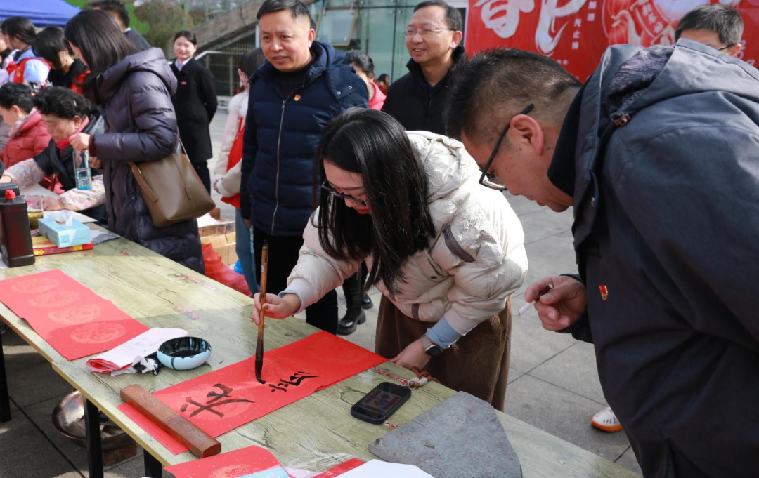 在“福到啦!”写春联活动现场,来自花溪区蓝贝儿艺术学校的师生、万象艺术班学员、金猴书画院的老师现场挥毫泼墨,笔走龙蛇,行书、楷书、隶书各显神韵,橫竖撇捺饱含希冀,更有老师笔底春风,几笔下去一朵朵凌霄花跃然纸上,围观的群众一边欣赏书法创作,一边品评春联寓意。纷纷表示手写的福字和春联更有年味儿,一笔一划都饱含着对美丽生态家园的新春祝愿。随后,工作人员现场赠送了带有浓浓墨香的福字和春联,大家对贵阳生态科普馆的暖心活动赞不绝口,不仅倡导公众继承传统、弘扬传统的理念,还增强了文化自信、社会认同感及归属感,营造了欢乐和谐、文明健康、生态环保的节日氛围,来自金猴书画院的夏老师说:“临近新年,这样的公益活动非常有意义,我也非常乐于参与这样的活动尤其是与生态相关的主题活动,不仅在大将山脚花溪河畔挥毫泼墨,还传播了中国的传统文化、习俗。”