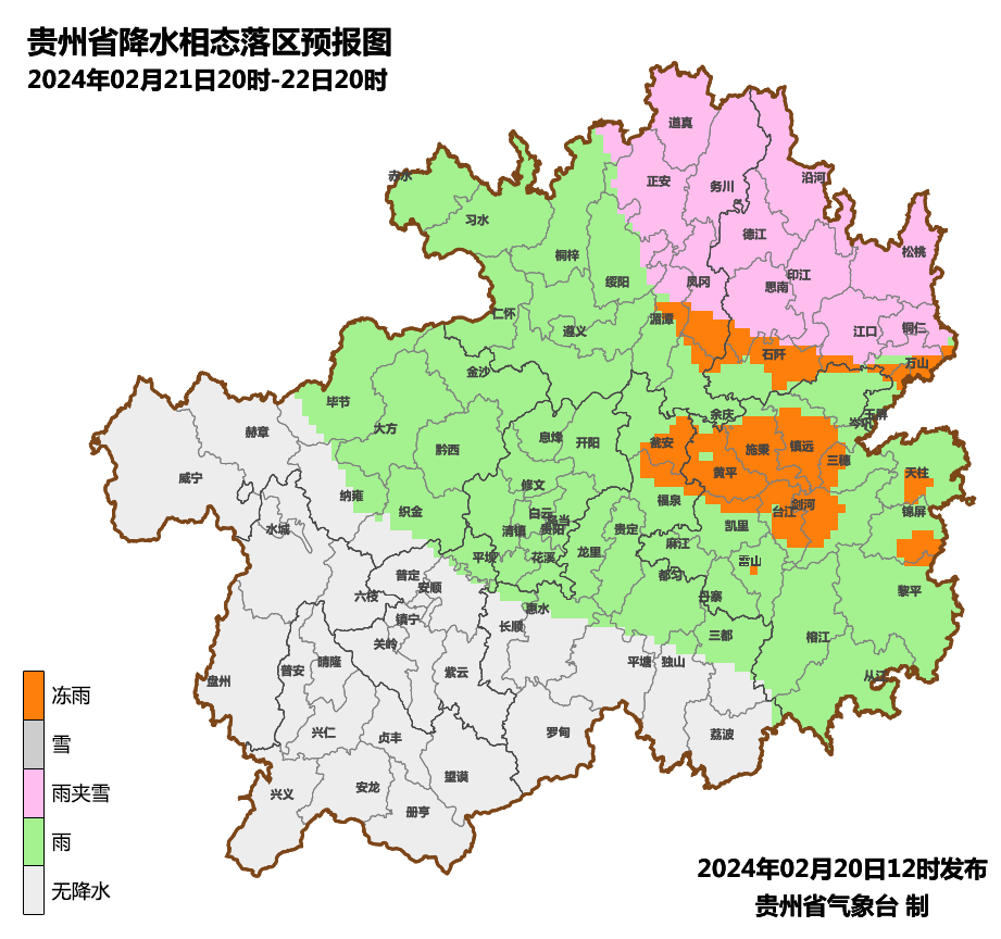 22日夜间到23日白天,省的西部边缘阴天间多云夜间有零星小雨,其余地区阴天有小雨,中东部地势高处有冻雨或小雨夹雪,高海拔和地势高处桥梁、洞口等伴有道路结冰,最低气温维持-4~1℃。