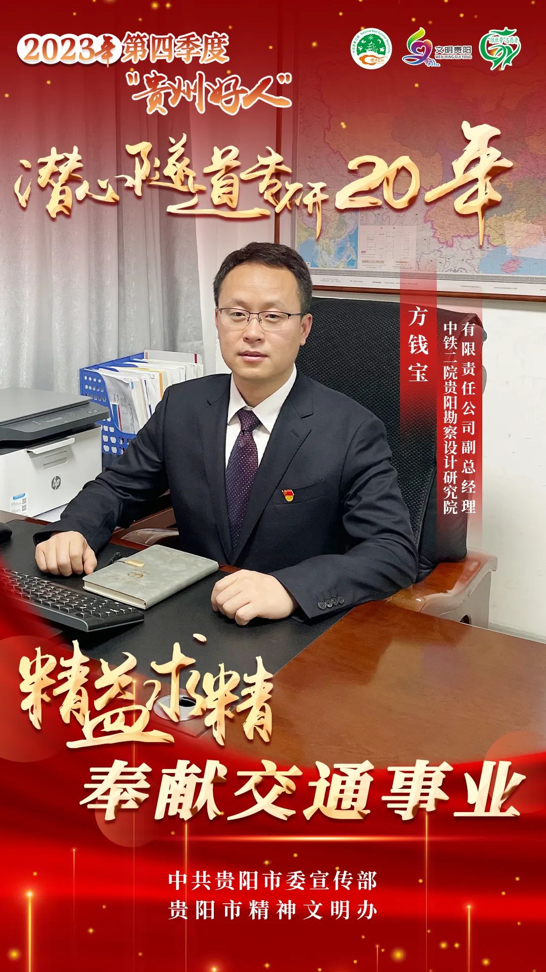 在灯火通明的办公室里,在机械轰鸣的隧道里,在一摞摞图纸里……他始终苦心钻研,默默耕耘。从事技术工作近20年来,他凭着一股子“钻”劲儿,参与了多项工程技术研究,解决了多个工程技术难题。在他看来,工程技术没有捷径,在技术领域,唯有勤学勤钻,才能知新创新。他就是中铁二院贵阳公司副总经理、隧道专业副总工程师,入选2023年第四季度“贵州好人榜”敬业奉献好人的方钱宝。