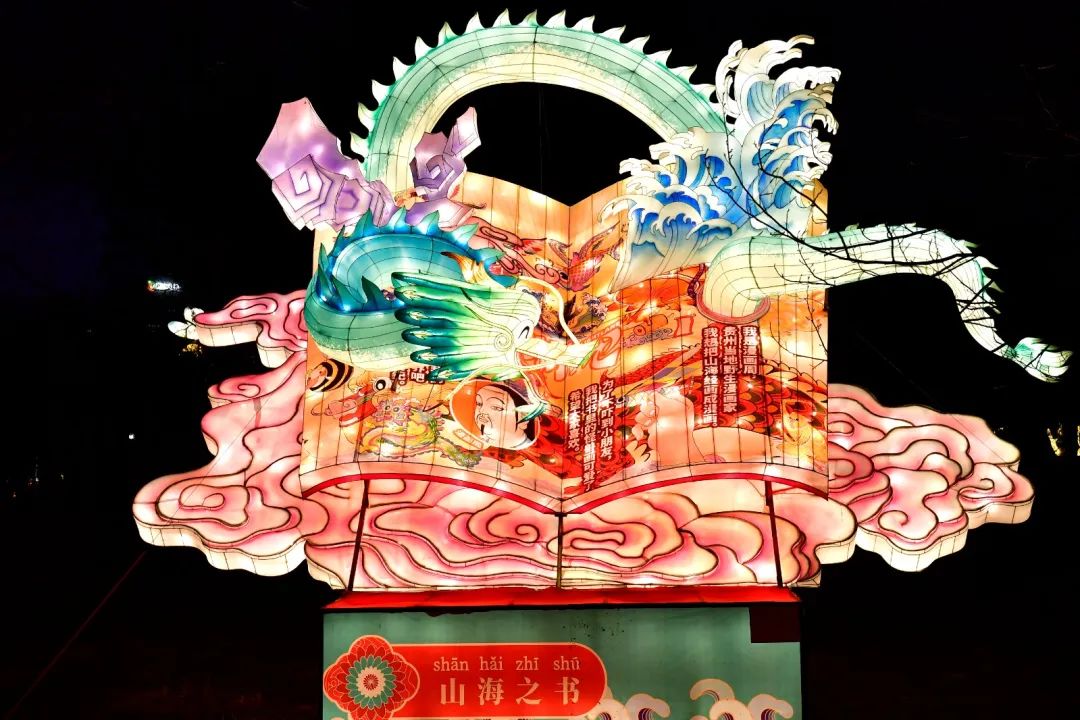 《山海经》是中国传统文化的一部分。本次灯会主办方巧妙融合山海经、贵州山地文化、民族文化,创造了一个奇幻的山海文化灯区,毕方、珠蟞鱼、骄虫、文鳐等具象化的神兽角色灯组既给观众带来了感官的刺激,更激发了市民游客探寻各神兽角色来源和背后故事的热情,直接或间接带动了更多人体验和学习中国传统文化。