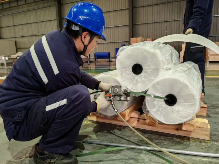 春节假期后,记者走进白云生产基地贵州中铝铝业有限公司铝箔制造部生产车间内,看到一批批经过生产线有序运转后的铝箔产品,正在进行最后的打包工序。这些打包好的铝箔即将运输到浙江,用来进一步深加工转换,或直接出口国外。