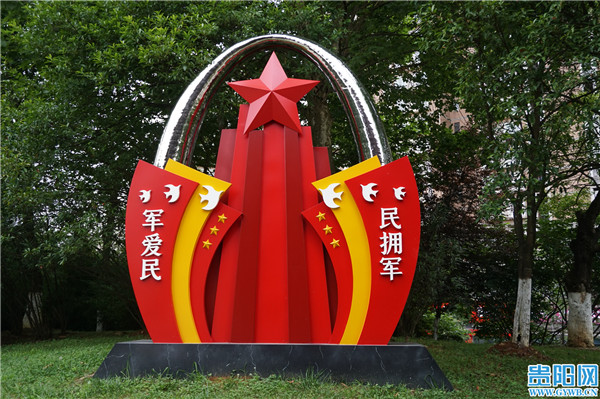 改造提升后的贵阳市双拥广场增加了入口指示牌,路灯、健身器材统一更改为迷彩色或红白主题色,突出了“国防”与“双拥”元素。广场上还增设了贵阳舰主题宣传栏、国防知识宣传栏、“最美退役军人”简介展板、革命英烈雕塑等内容,营造浓厚的拥军爱军氛围,旨在将广场打造成贵阳市双拥模范城的代表性区域。