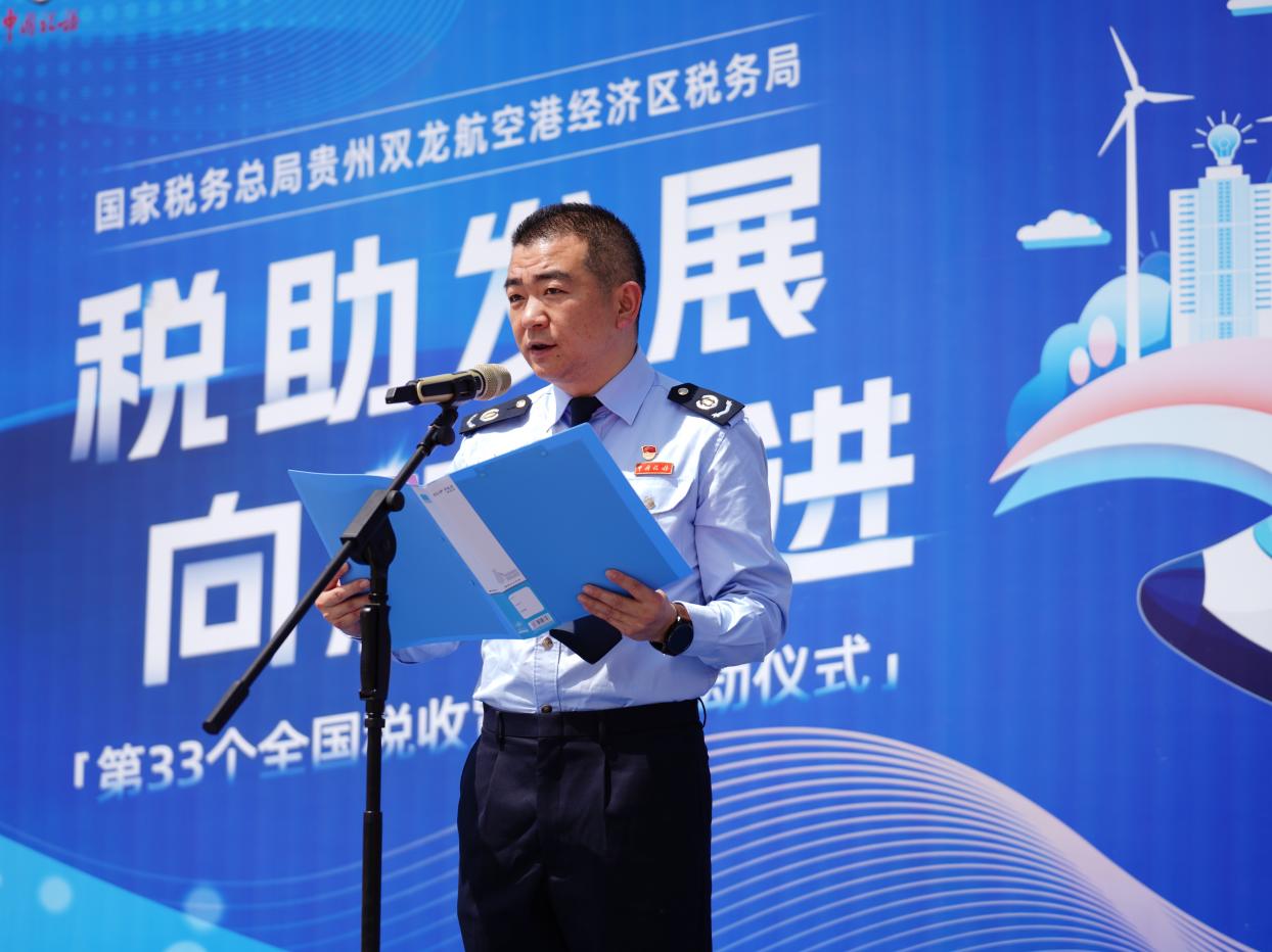 4月2日,国家税务总局贵州双龙航空港经济区税务局以“税助发展 向新而进”为主题,在红飘带长征数字科技艺术馆举办第33个全国税收宣传月启动仪式。国家税务总局贵阳市税务局党委委员、副局长刘元浩,贵州双龙航空港经济区政务综合服务中心副主任李婷婷出席活动。