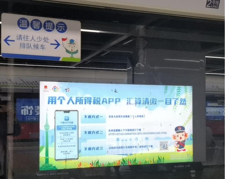 云岩区税务局依托1号线客流量大、线路长、具备可视化设备等宣传优势,将“个人所得税汇算清缴”“社保缴费”等税收宣传元素植入地铁,为市民打造一个移动的“税收知识教室”。在这里,市民们可以随时随地获取最新的税收优惠政策以及便民税务举措,让税收知识在流动中传递,便民服务在出行中延伸。