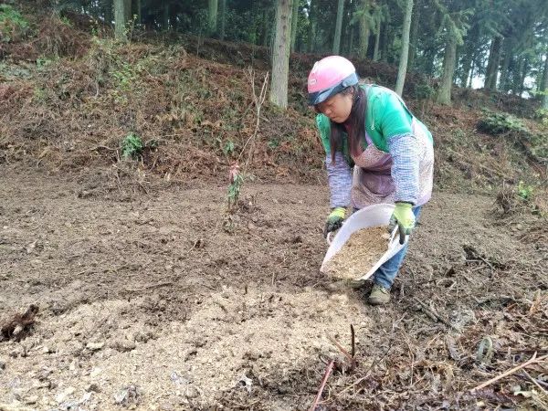 村民正在铺木屑。