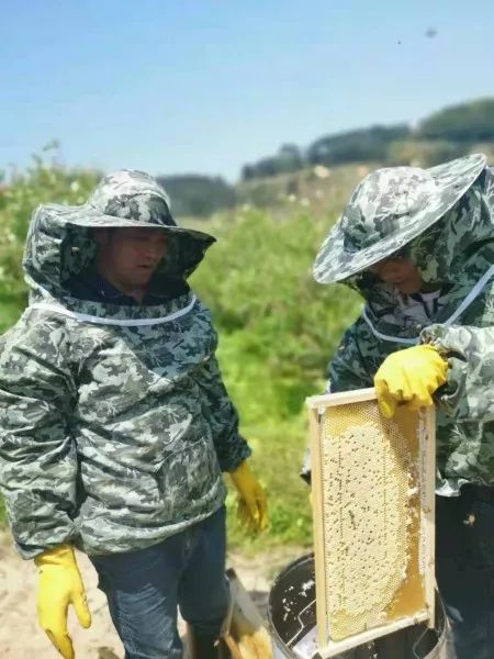 蜂农正在收割蜂蜜。