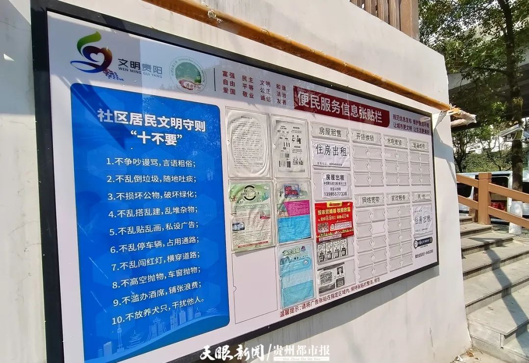 4月12日,记者从贵阳市白云区获悉,近日,在龚北社区,一块块“便民服务信息张贴栏”里,一张张“小广告”端端正正地放置其中,吸引了不少居民群众驻足。