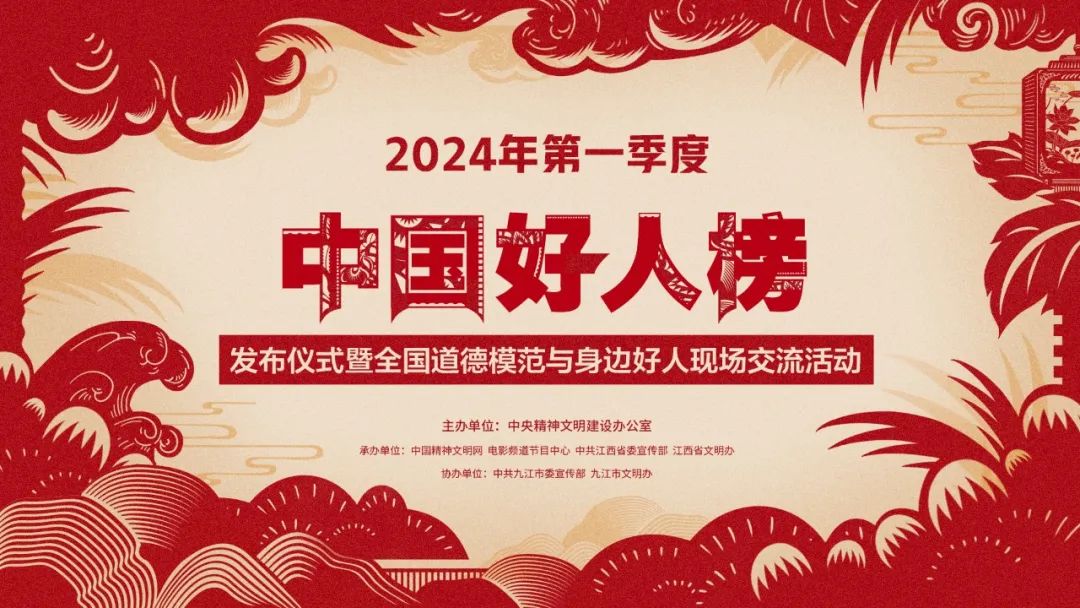 2024年第一季度“中国好人榜”发布仪式暨全国道德模范与身边好人现场交流活动,将于4月18日在江西省九江市举办。“中国文明网”、电影频道节目中心、“学习强国”学习平台、人民网、新华网、光明网等多个平台将同步全程直播,网友们可以点击下方直播预约,届时收看。