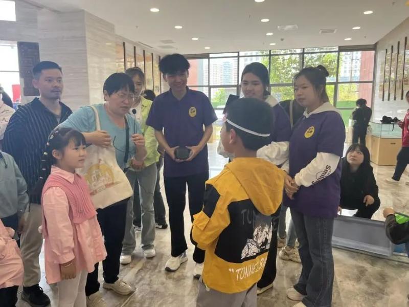 “我今天参加了朗读活动,还做了非遗手工,认识了三叶虫的化石,在飞镖铺玩了飞镖。我觉得非常有趣,同时我也收获了很多新知识,是一次特别开心的经历。”来自尚义路小学的四年级学生邹明骏分享道。