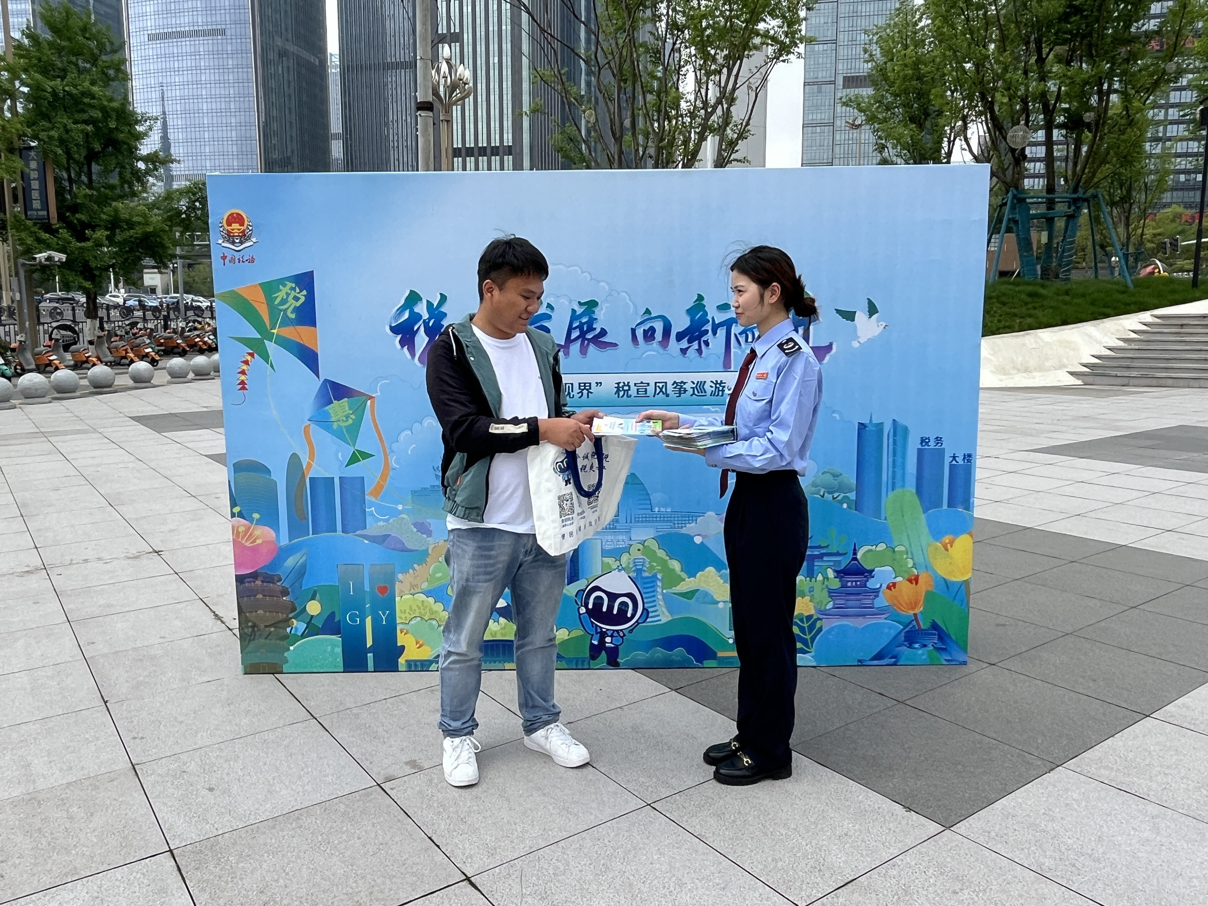 在活动现场,税务人员设置了“税费政策礼包”赠送区,政策咨询服务区和“拍照打卡”区,税收宣传志愿者向附近商户宣讲了第33个税收宣传月活动内容、2024年“便民办税春风行动”新举措、区局“一刻钟税费便民服务站”等,并向往来市民赠送税收宣传手册和宣传手袋。