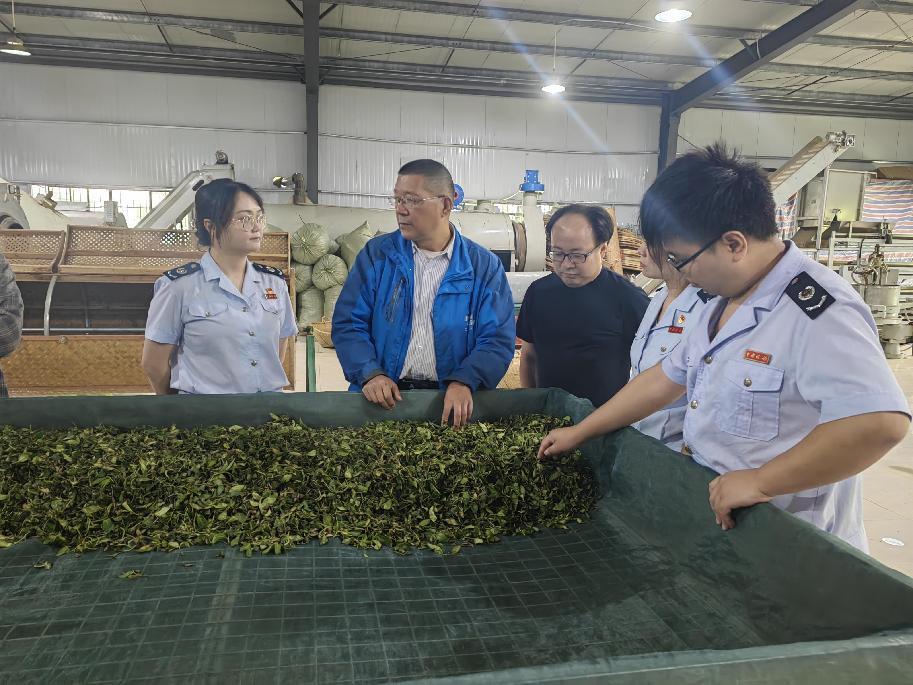 税务干部参观茶叶生产车间。