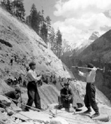 1954年,筑路大军修筑康藏公路(1955年改名为川藏公路)的场景
