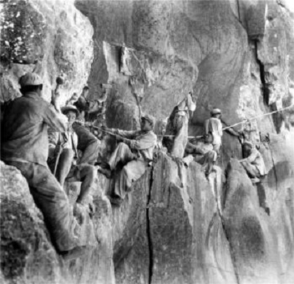 筑路战士在怒江两岸的悬崖峭壁上劈山筑路