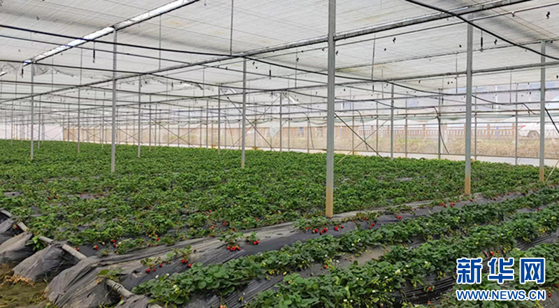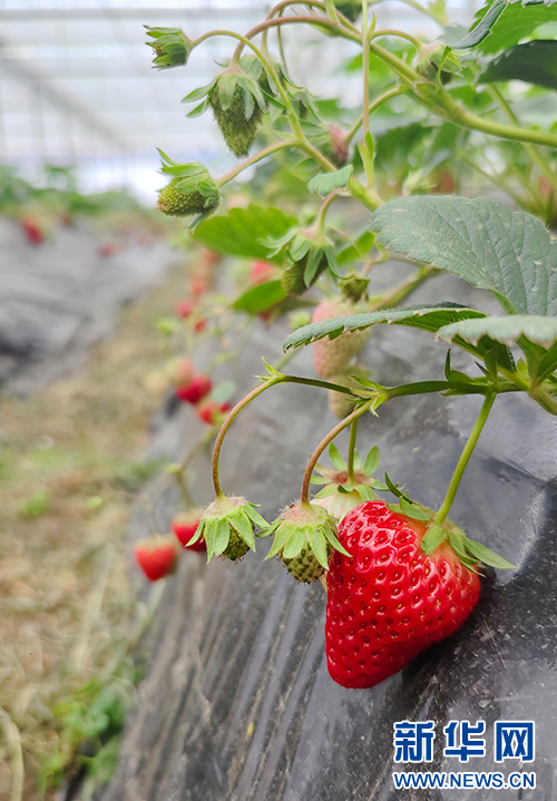 大棚里的草莓已经成熟。新华网 邓娴 摄