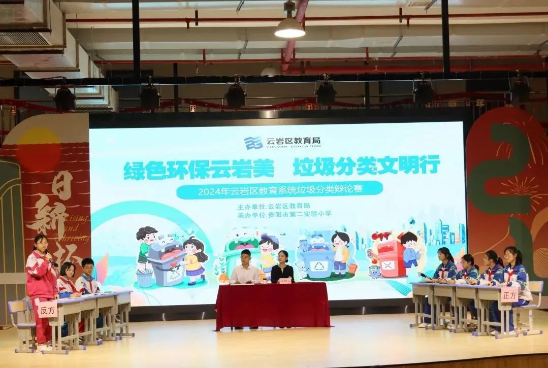 日前,2024年云岩区教育系统“绿色环保云岩美、垃圾分类文明行”垃圾分类知识竞赛和辩论赛云岩区总决赛在贵阳市第二实验小学举行,经过学区海选和初赛,共14支小学队伍和6支中学队伍在此展开巅峰角逐。
