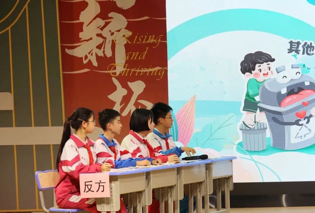 “垃圾分类工作是否可以实行奖励政策?”“探访垃圾分类的重要性。”……在初中辩论赛环节中,双方辩手围绕垃圾论点引经据典、配合默契、激情碰撞,辩出风格、辩出自我,掌声与欢呼声不绝于耳,不仅展示了同学们奋发向上、团结协作的青春风采,也体现了对环保实践的深刻理解。