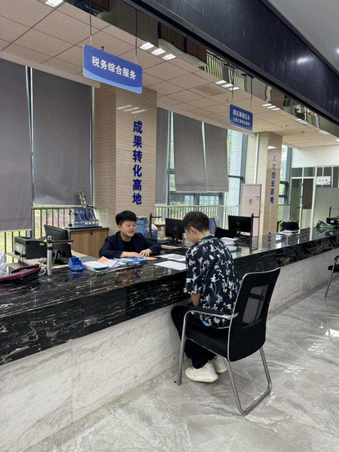 去年底,为切实服务好贵州科学城内及其周边的广大企业群众,高新区税务局联合高新区政务服务在科学城设立政务服务延伸点,方便纳税人就近办税,最大程度减轻纳税人的负担。服务点对标办税服务厅,按照纳税服务规范要求,规范运作流程,建立健全首问负责、限时办结、延时服务、一次性告知、容缺办理等相关配套制度并严格执行。并认真落实“最多跑一次”服务要求,在服务延伸点开展实名认证、发票申领代开、税款征收、税费政策宣传咨询辅导等税收业务,方便纳税人、缴费人就近办理税费业务。