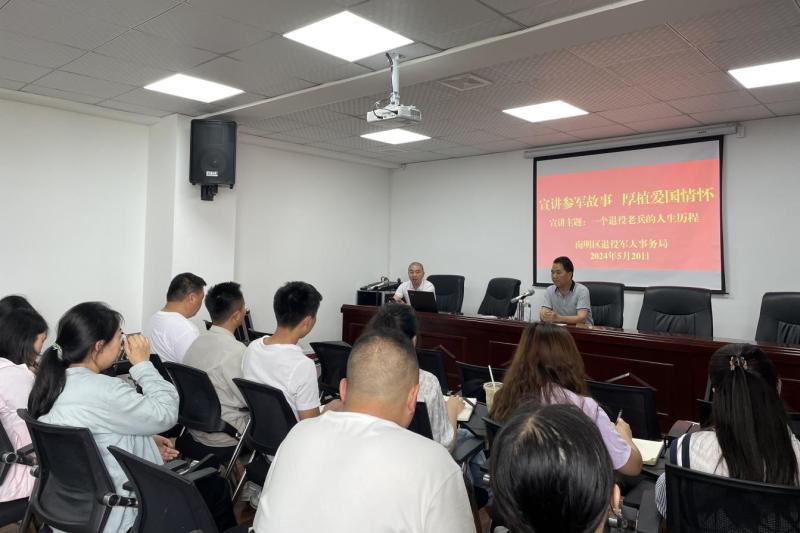 近日,南明区军休干部雷绍清受南明区退役军人事务局邀请,到该局开展了主题为“一个退役老兵的人生历程”宣讲活动,20余名干部职工参加。
