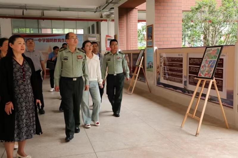 调研组一行现场听取两所国防教育示范学校工作开展情况汇报,察看了两所学校的校园国防教育建设。两所学校获评“全国国防教育示范学校”称号以来,不断深化国防教育内涵,结合自身特点,将国防教育融入课堂、融入课余生活,激发广大学生爱党爱国爱军之情、从军报国之志。