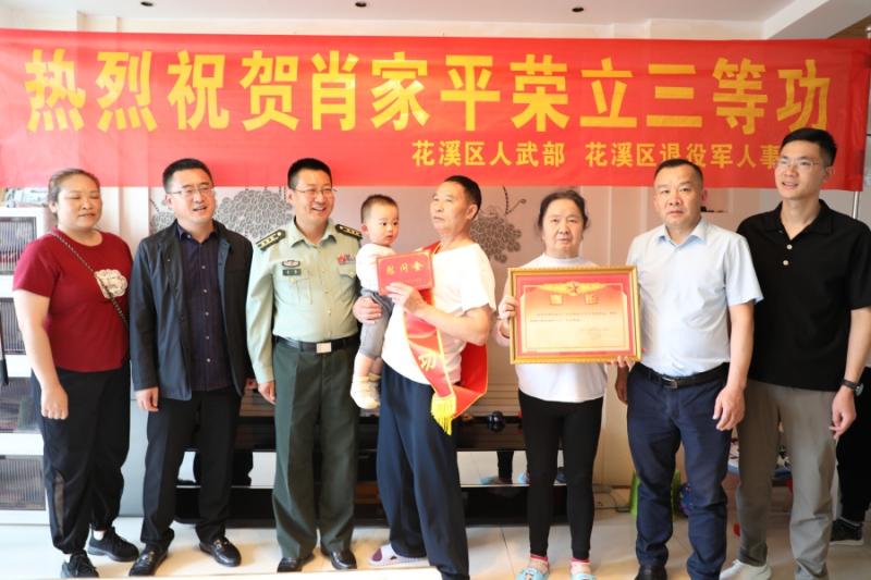 一人着戎装,全家享光荣。5月22日,贵阳市花溪区开展集中送喜报活动,军地领导带领由区人武部、区退役局、各街道工作人员组成的“送喜报小分队”将三张立功受奖喜报逐一送至花溪籍官兵李仁麟、肖家平、李嘉的家门,让军属共享喜悦荣光。