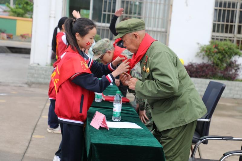 参战战士、二等功臣杨厚元为孩子们带来了一堂生动的国防教育课,并分享了自己的成长经历和战斗故事,让学生们感受到了军人的英勇与担当。结束时,小学生们上台为老战士系上红领巾,表达了崇高的敬意之情。