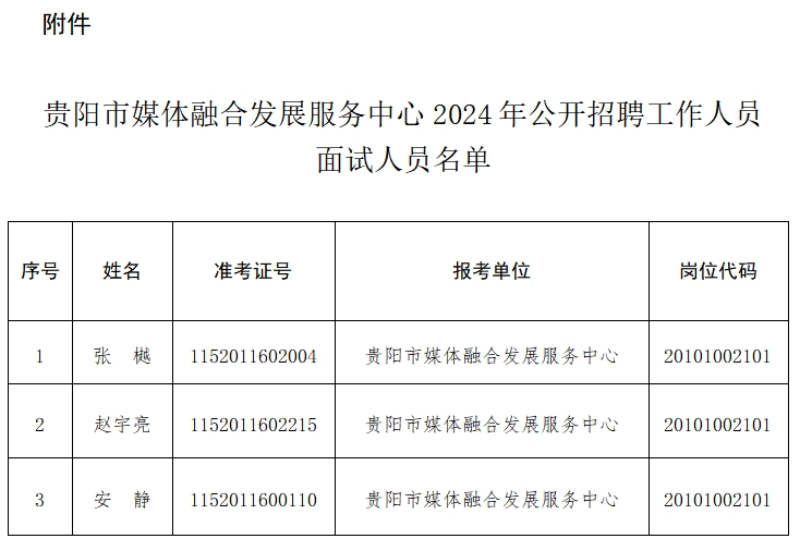 附件:贵阳市媒体融合发展服务中心2024年公开招聘工作人员面试人员名单