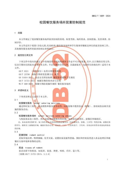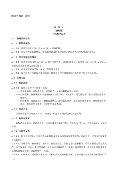 附件:DB 52/T 1809-2024《校园餐饮服务场所鼠害防制规范》(登陆网站贵州省市场监督管理局网站查看附件原件https://amr.guizhou.gov.cn/ztzl_85/xyspaqpczzzxxd/202406/t20240611_84859757.html)