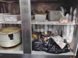 列入黑榜原因:1、盛放食品容器未加盖;2、冰柜储存食材不规范;3、厨房油污严重。