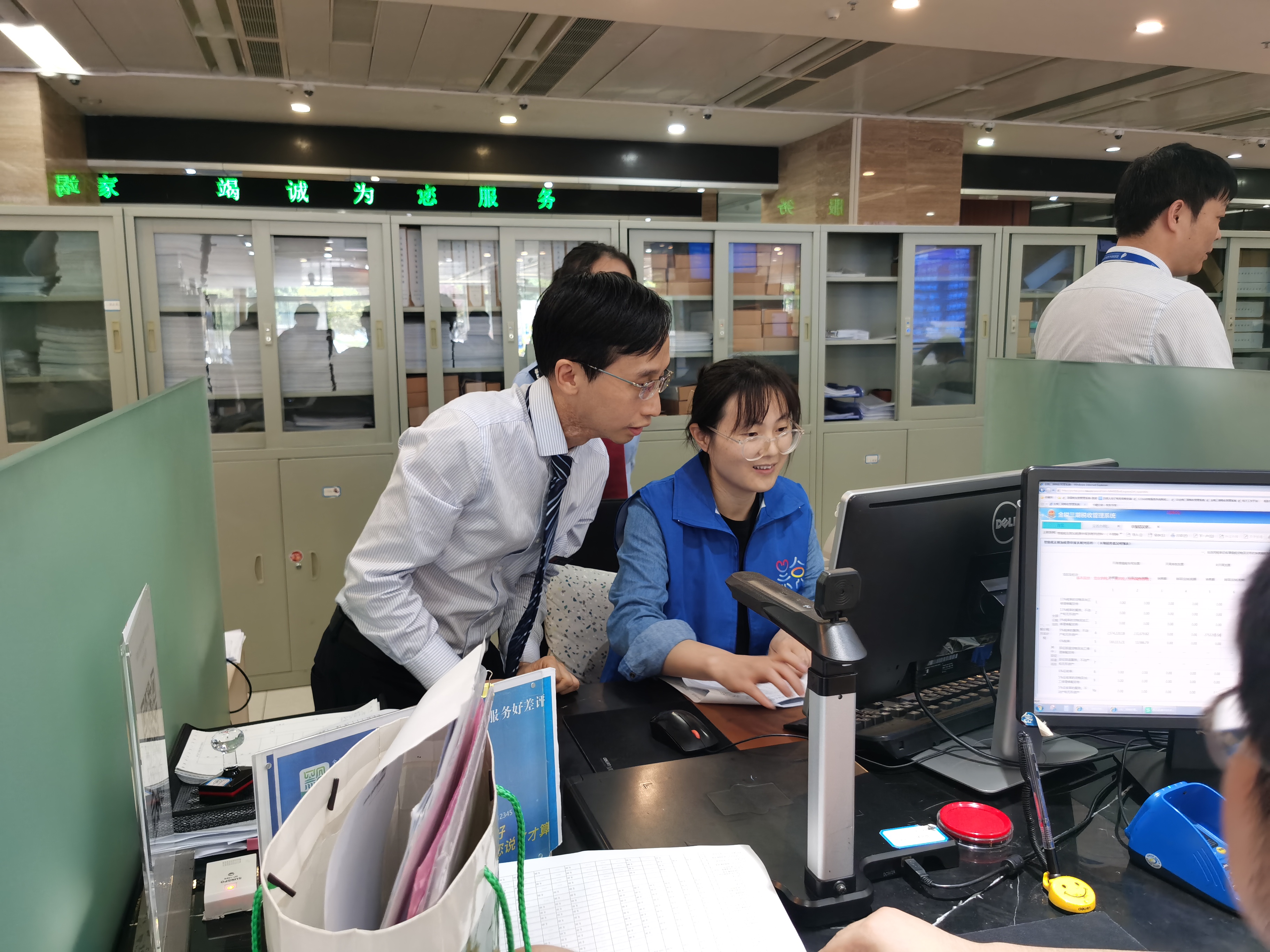此次活动还设置了办税窗口“走流程”体验,邀请“体验师”来到办税窗口,在工作人员的指导下,亲身体验办税缴费流程,操作电子税务局等办税缴费端系统,税务业务骨干还为体验者现场演示了办理过程中遇到问题快速进行解决。