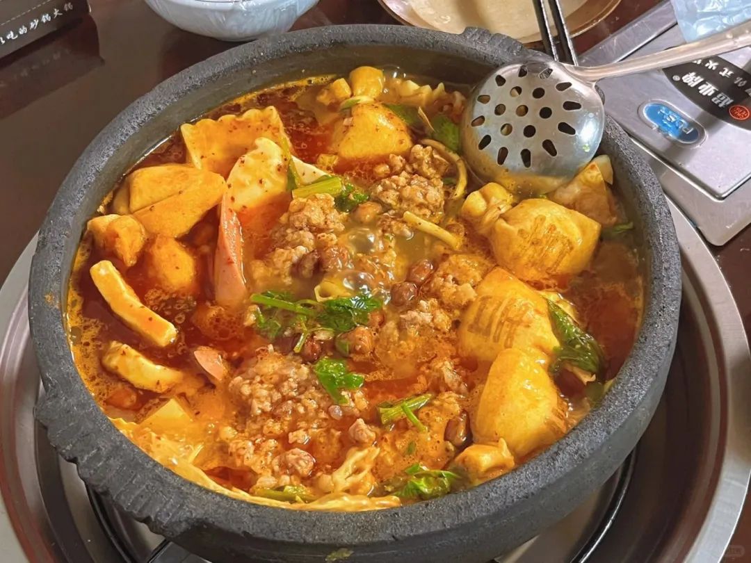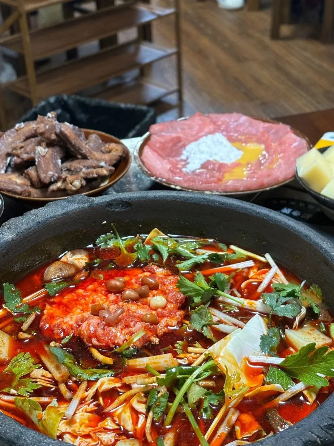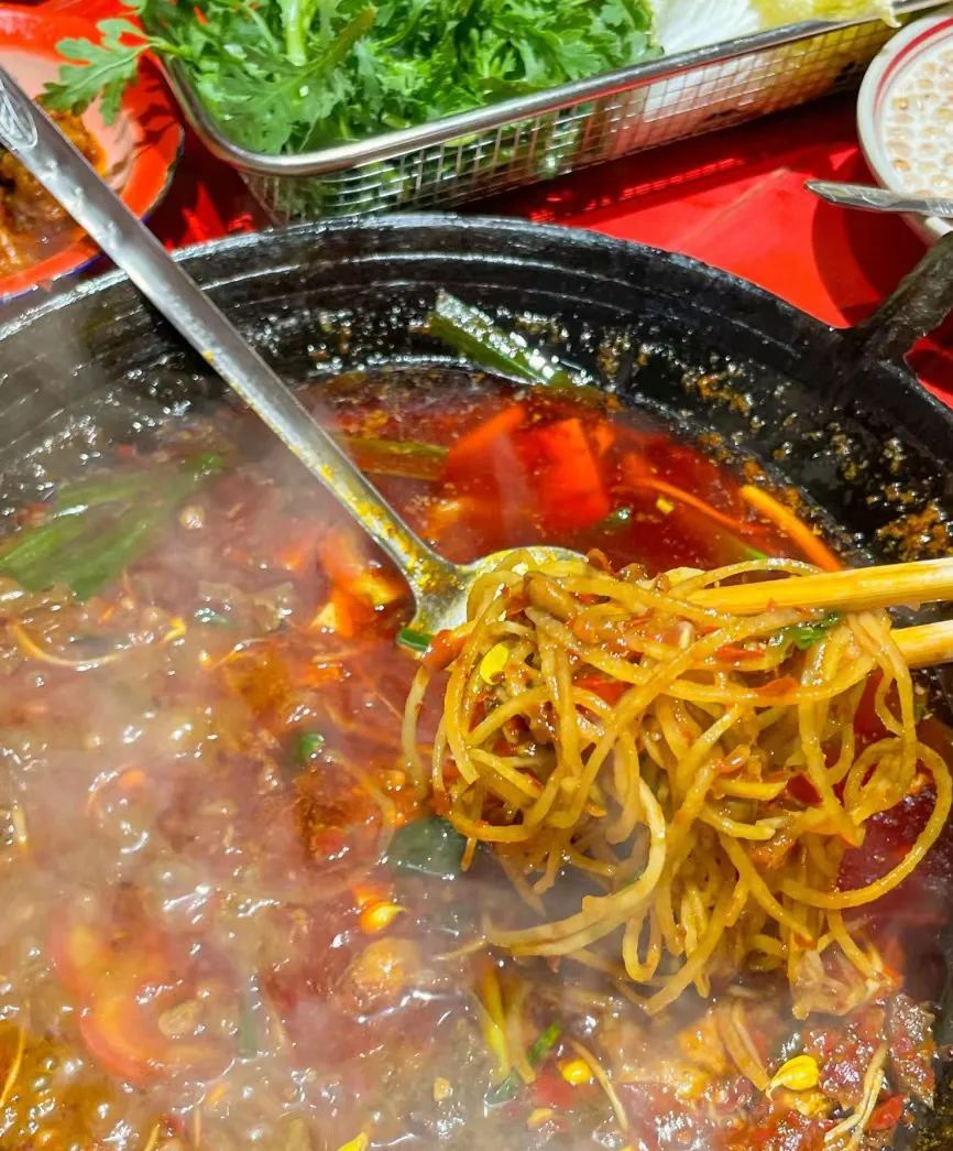 酸辣的锅底、超有风味的腐乳、嫩滑的牛肉、吸汁的面筋,加个现炸酥肉、板筋,绝对不出错。来吃上这一口,贵州就不算白来。