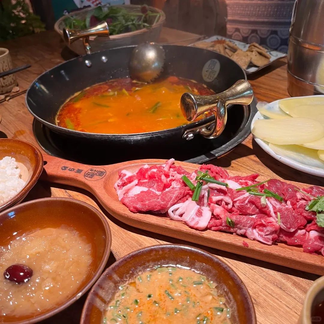 贵厨家牛肉全部都是新鲜现切,红酸汤的味道开胃又爽口!店里还有无限“续杯”的蔬菜水果和小吃。此外,装修也极具少数民族特色,味道和环境兼具的贵州特色火锅,值得一冲!