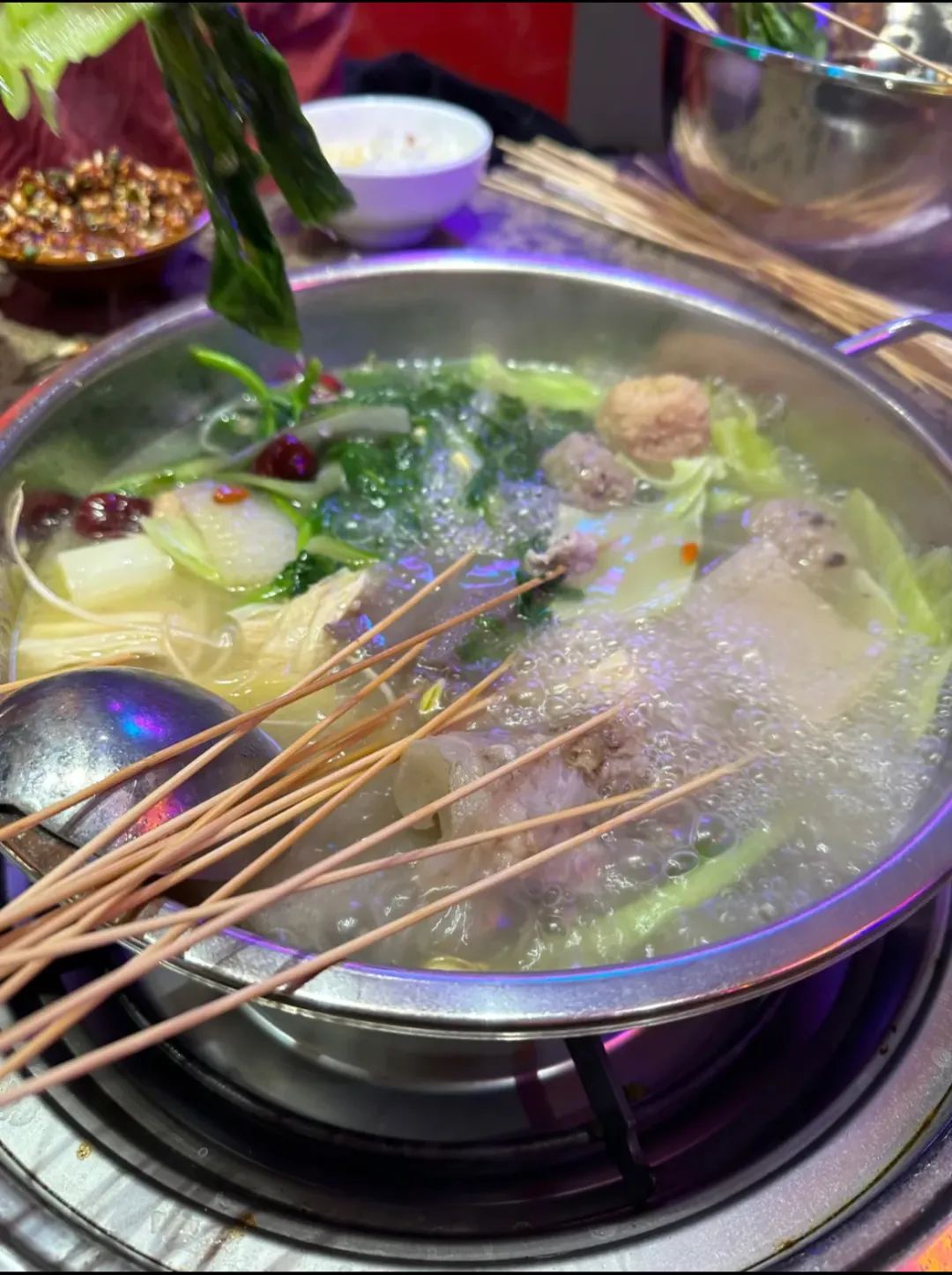 清水烫的汤是鲜鲜的大骨汤,汤底没有什么过多的调味,但是又香又浓,食材新鲜丰富,不能吃辣的朋友,不用蘸水也非常鲜美。