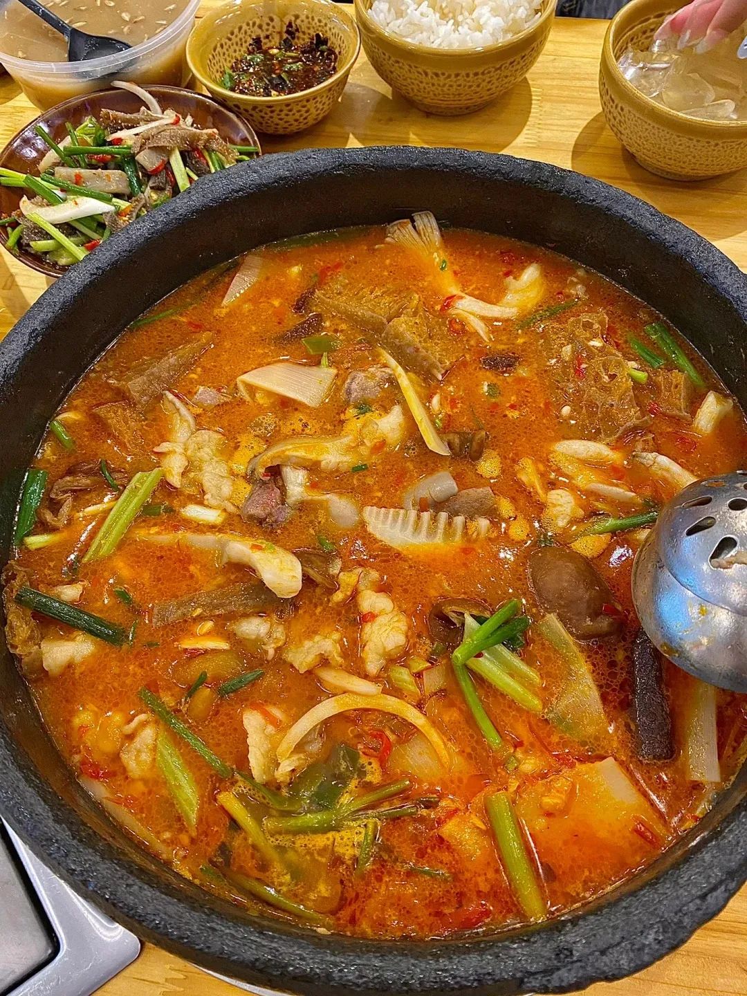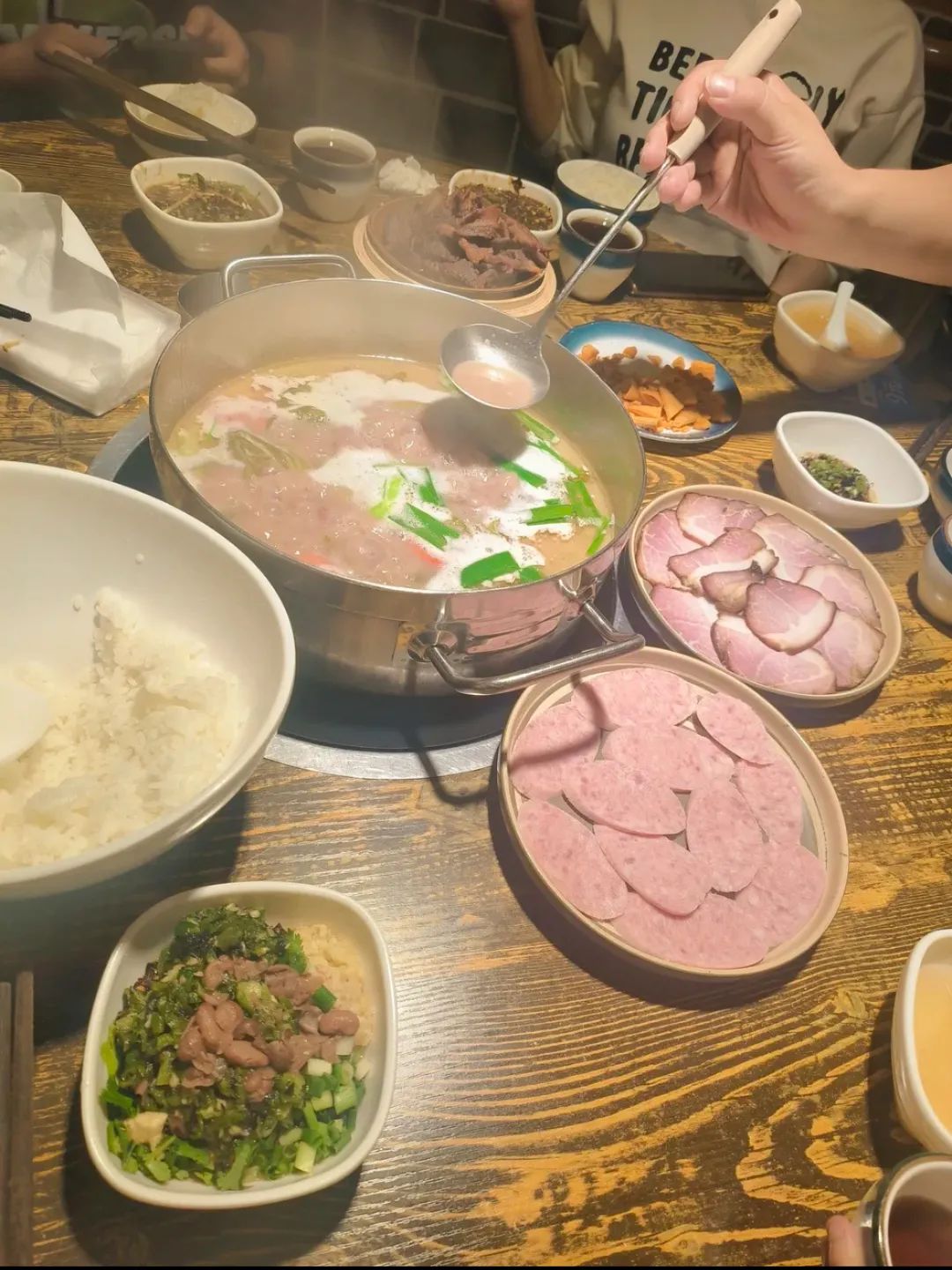 贵州特色,豆米火锅那是必须进入打卡清单,锅底是非常浓郁的豆汤制成,还可以选择清汤照顾不吃辣的“饭搭子”,豆米“耙”得不行,拌饭简直香到迷糊。