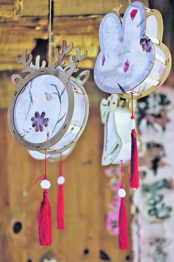 ▲用花草纸制作的灯盏。