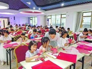 研学活动中,孩子们体验非遗剪纸艺术。