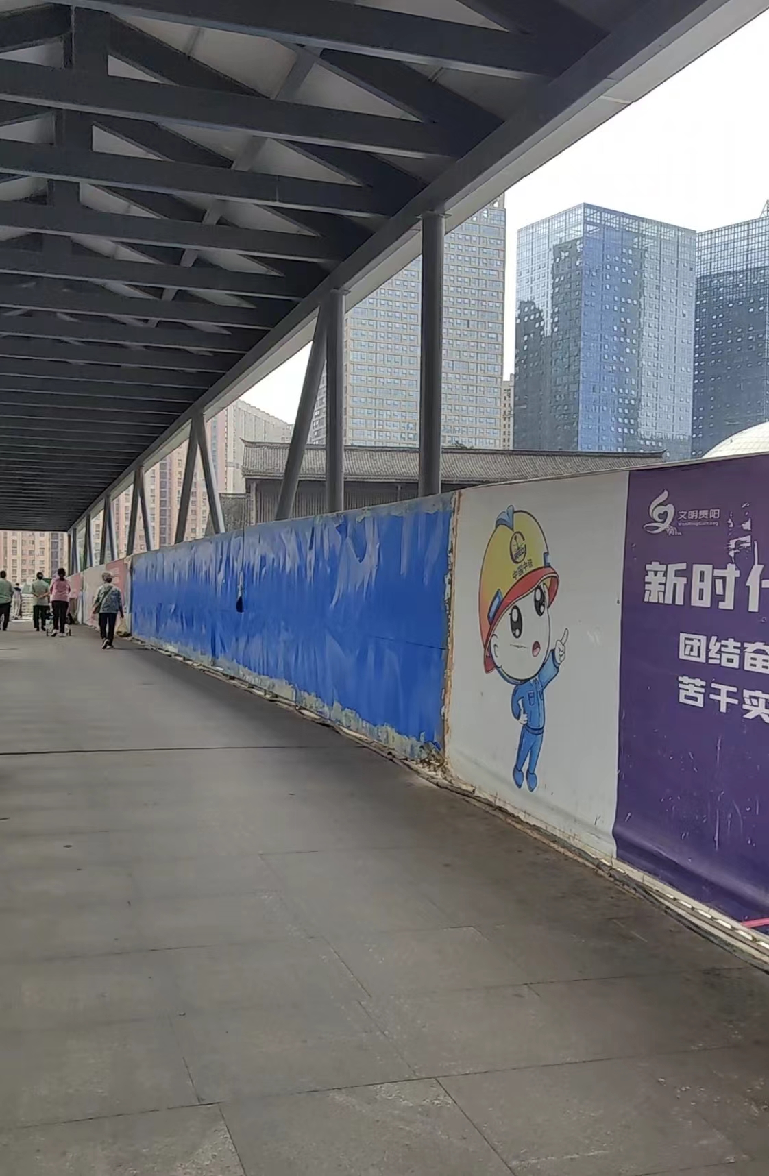 天桥上约一人高的施工围挡不仅挡住了城市美景,还让过往行人感到有点“压抑”。针对市民向贵阳市融媒问政平台反映的问题,贵阳轨道交通三号线建设运营有限公司立即联系施工单位进行处置,目前围挡已拆除。