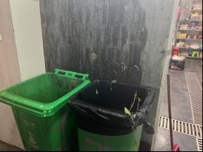 上榜原因:现场环境卫生较差,未按规定使用门帘,未使用加盖垃圾桶。