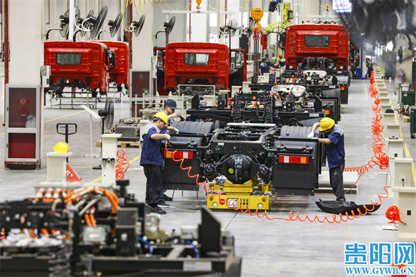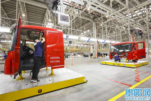 连日来,在位于贵安新区的贵州长江汽车有限公司总装车间纯电重卡生产线,工人各司其职,生产线一派繁忙。该公司是一家集新能源商用汽车研发、生产、销售、服务于一体的现代化整车企业,主要生产纯电货车、纯电重卡等。