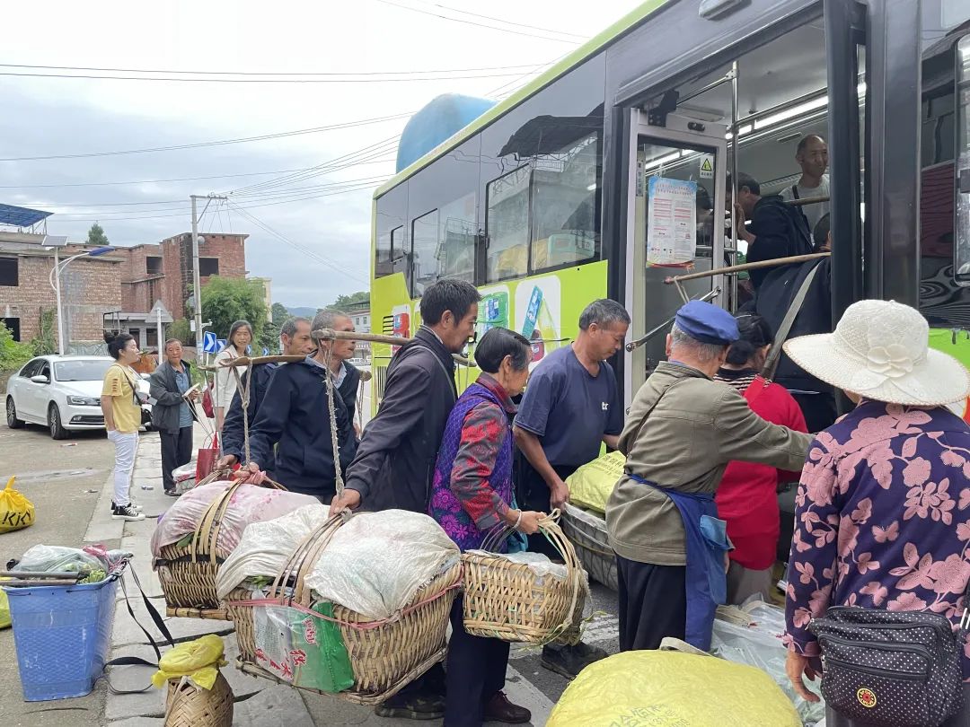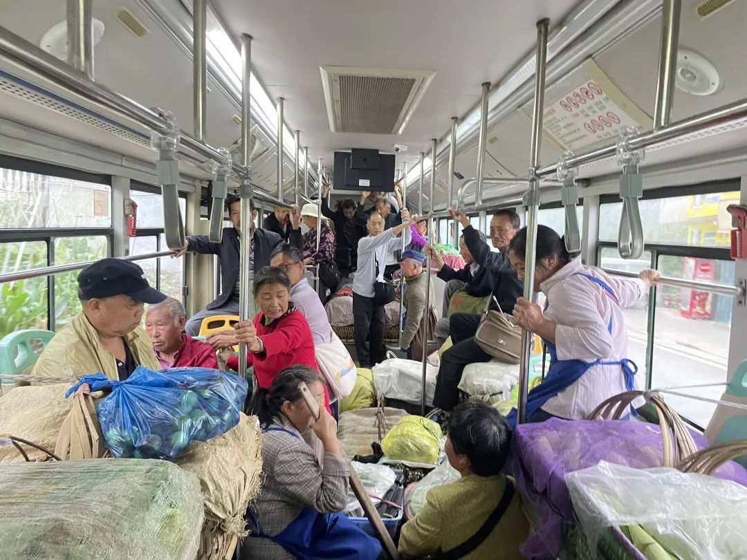 6时15分,公交车缓缓驶来。车门打开,司机陈树山微笑着探出头来,提醒大家注意安全、有序上车。菜农们相互帮忙传递着沉重的篮子,将今天准备售卖的蔬果搬运上车。