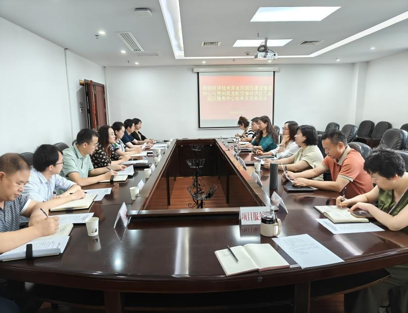 会上,贵州双龙航空港经济区工业园区服务中心、贵阳经开区园区建设服务中心双方就园区建设、产业发展、体制机制改革、园区管理、服务企业等方面的工作经验进行深入交流。经开区园区建设服务中心相关负责人表示,希望两区持续加强信息交流,促进双方在招商引资、人才引进等方面资源要素共享,围绕园区重点产业,积极发挥各自在先进装备制造、电子信息制造两项主导产业的优势,拓宽合作领域,实现产业合作双向赋能、发展共赢。经济区工业园区服务中心相关负责人表示,此次学习交流了经验、开拓了眼界,达成了合作共识,希望双方能够持续保持良好的合作共建关系。