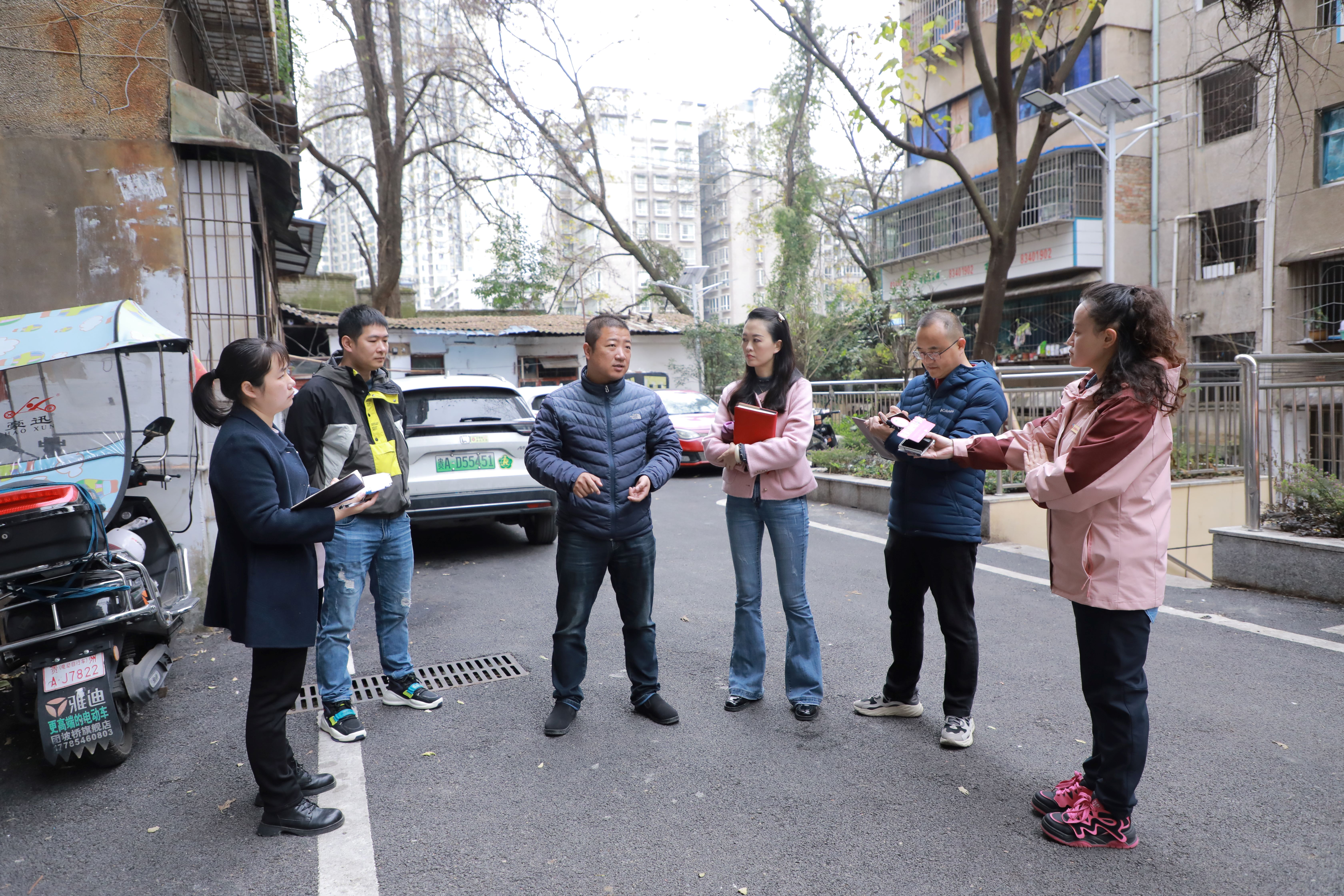 贵阳融媒问政记者(右一)在南明区青年小区跟进解决老旧小区门禁问题。
