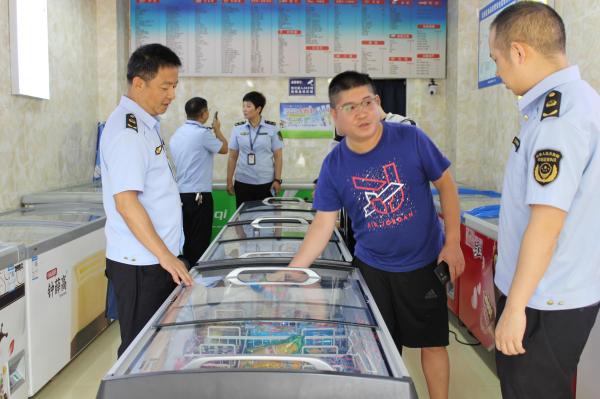 7月4日上午10时,市市场监管局兵分两路:食品流通管理处执法人员来到“云岩区若松副食百货经营部”。该店为冰淇淋、雪糕等产品代理销售店铺,主要消费者为周边大型小区住户。执法人员详细查看了该店相关证照、索证索票情况和产品储存是否符合条件等。检查发现,该店卫生整洁、明码标价,但存在票证不够齐全,部分低温冰柜无温度监控记录等问题,责令该店立即整改。