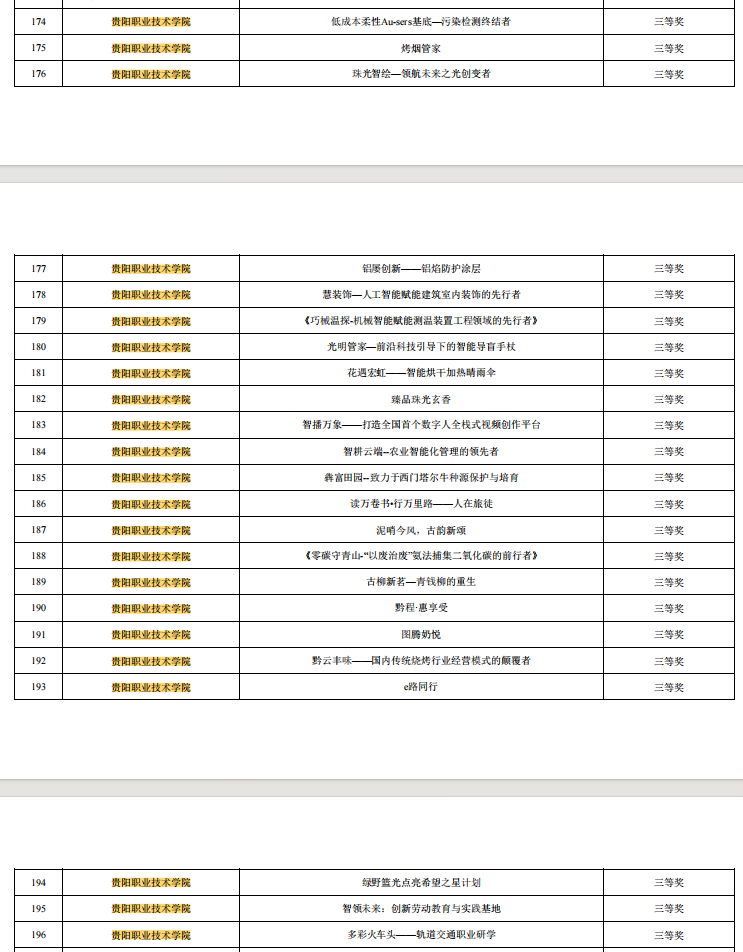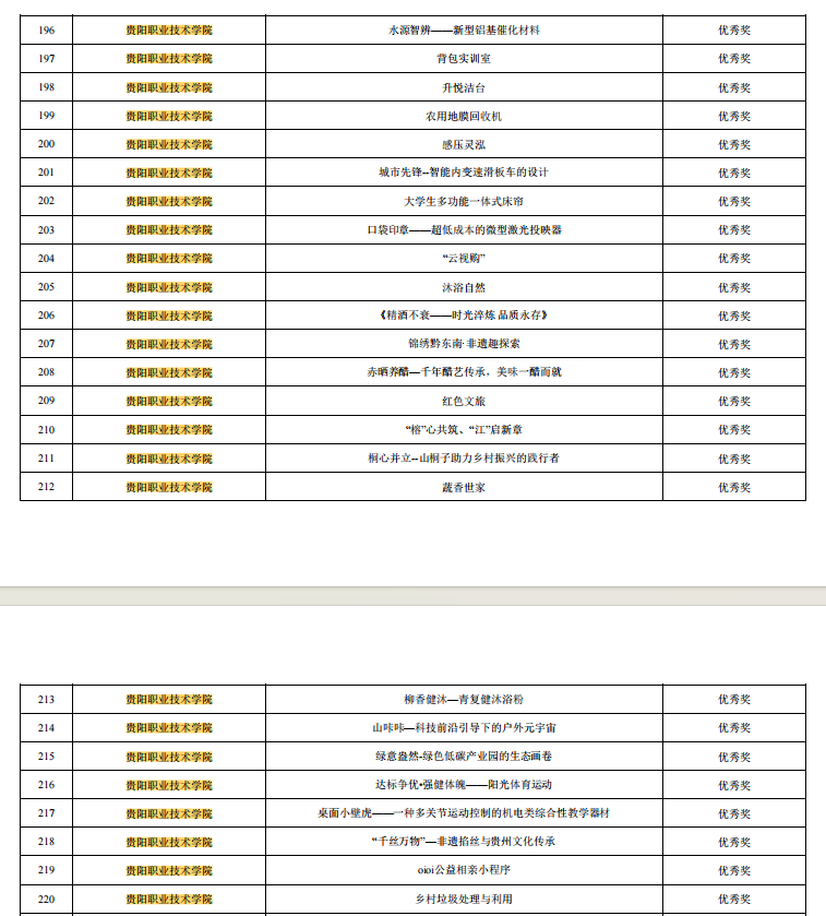 贵阳网·甲秀新闻讯 7月1日至5日,共青团贵州省委对第十四届“挑战杯”贵州省大学生创业计划竞赛拟获奖项目名单进行公示。贵阳职业技术学院共有61个项目获奖,其中,一等奖4个,二等奖9个,三等奖23个,优秀奖25个。