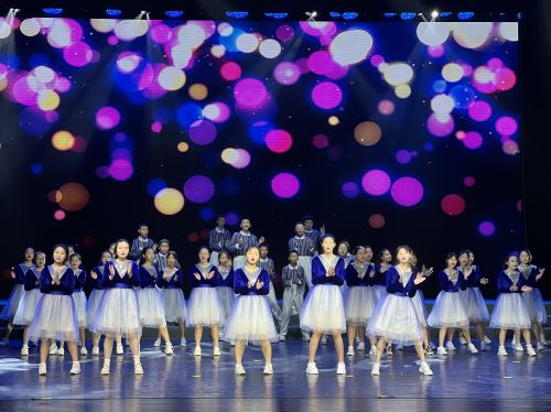 伴随着《月光下的中国》情景朗诵,展演正式拉开序幕。第一篇章中,舞蹈《稻香》、音乐剧《寻找声音的耳朵》以及公办强校联盟体育特色综合展示等节目轮番上演,赢得了观众的阵阵掌声和欢呼声。