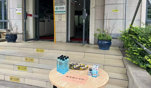 小河支行分会在网点门口设置助考驿站,贴心准备了文具套、中性笔、2B铅笔、雨伞、瓶装水等,为考生和家长们送上暖心服务,并在网点劳动驿站设置家属休息等候区及绿色窗口,助力学子圆梦。