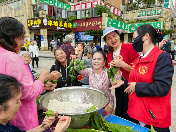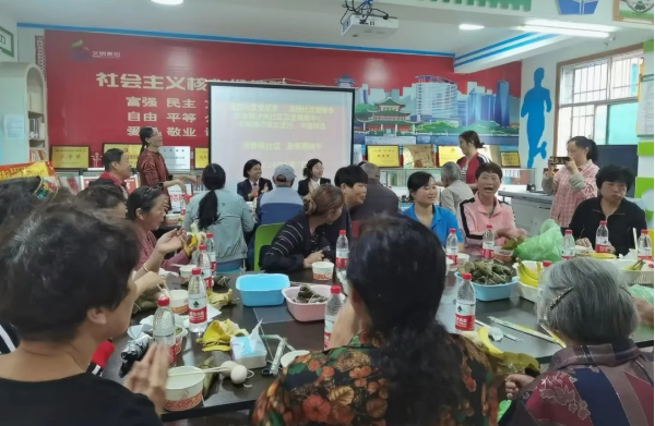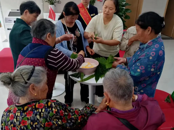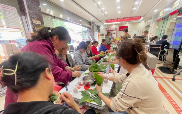 小河悦秀支行携手航天园党总支志愿者在小河支行第三党支部党员活动室开展“社银一家亲,粽香浓浓情”活动,大家包了一千余枚粽子,煮熟后送到社区居民手中。长江路支行联合长江社区居委会开展“浓情端午 欢乐粽享”包粽子活动,工作人员向社区居民们宣传金融知识,为客户兑换零钞。王武支行联合红林社区邀请居民包粽子,开展有奖问答活动。