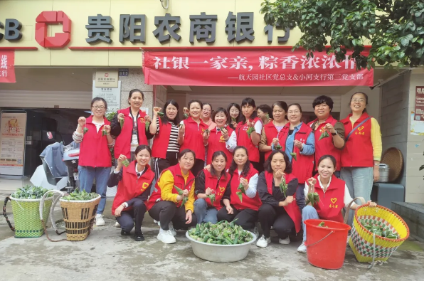 龙洞堡支行联合见龙路社区党总支、贵州双龙航空港经济区政府综合服务中心党支部开展端午活动,邀约辖区居民、社区工作人员及贵阳学院的学生志愿者参加,100余人一起包粽子、过端午。中兴路支行邀请客户在网点开展包粽子比赛,工作人员还向大家宣传金融产品。首开紫郡支行联合首开紫郡社区、小碧派出所开展了“反诈知识宣传、‘粽’情端午”主题活动,让大家感受到贵阳农商银行的温暖和关怀。