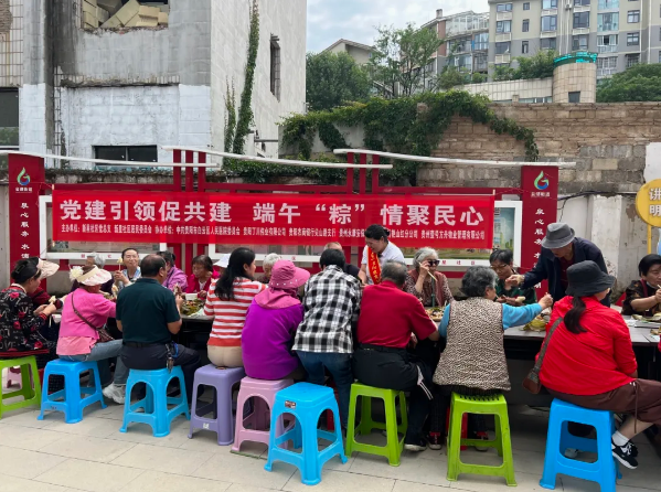 科技支行第一党支部联合观山湖区白鹭湖社区党支部举办“浓情端午 欢乐粽享”端午节主题活动。志愿者们在现场向社区居民普及金融、消费者权益等知识,第一支部党员参与节目表演,观看社区居民演出并参加互动问答,大家集体歌唱《我和我的祖国》,将活动推向高潮。会展东路支行联合会锦社区开展“端午鸡蛋送进社区”活动,和居民们一起欢度端午佳节。